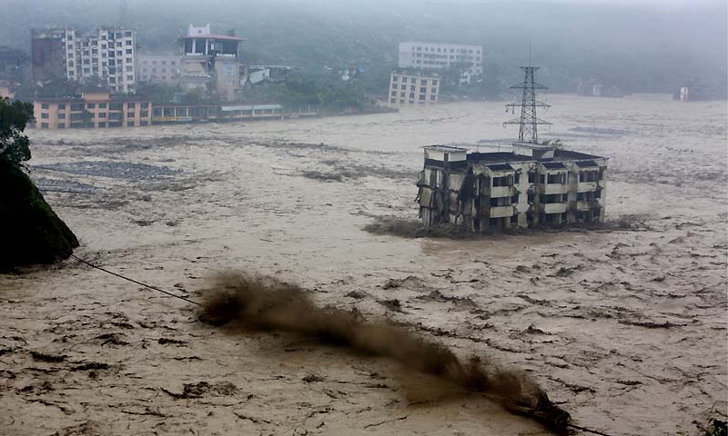 In nearby Beichuan county, flooding destroyed buildings and wrecked exhibits at a memorial for the 2008 earthquake.